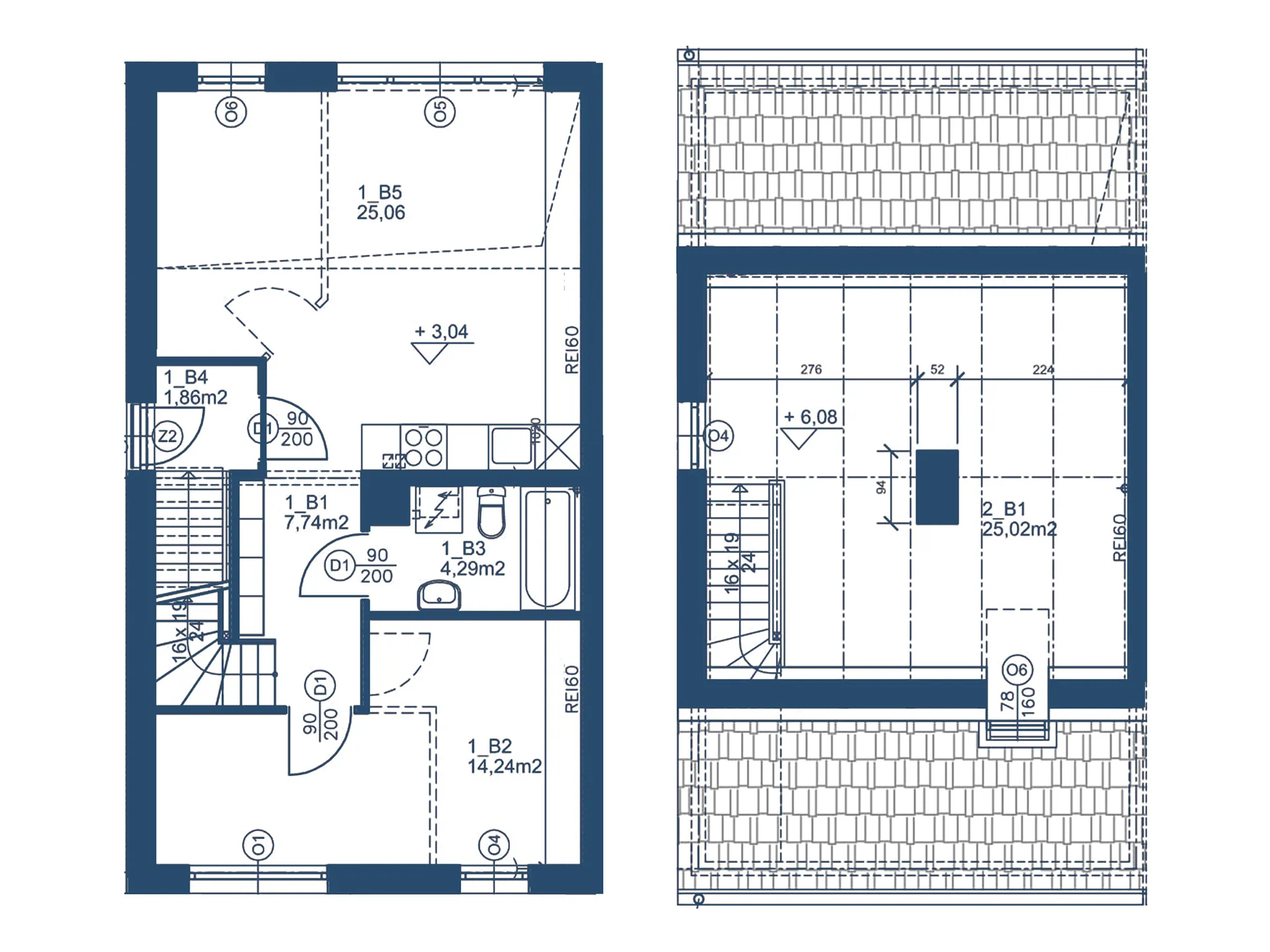 Parter 48,65 m² oraz Piętro 50,78 m² + Antresola 25,02 m²